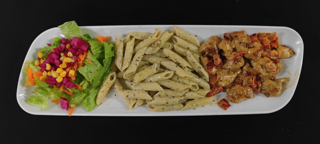 160gr Menüler kremalı makarna ve salata ile servis edilir